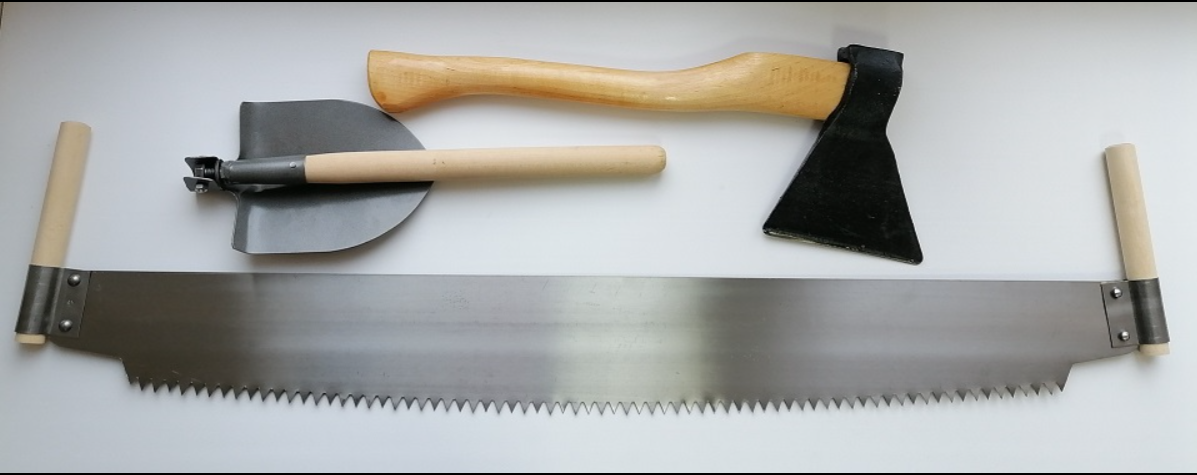Набор состоит: сапёрная складная лопата 1 шт, топор 1 шт, пила 1 шт. Полотно пилы выполнено из стали. Ручки пилы выполнены из дерева. Длина пилы 1 м. Лопата складная, материал...