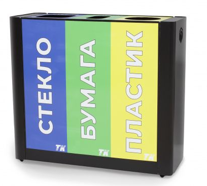 Урна для раздельного сбора мусора 3 секции Высота, мм 960 Длина, мм 350 Ширина, мм 850 Материал металл (толщина 1,5 мм) Опции: Три секции с надписями: пластик, бумага