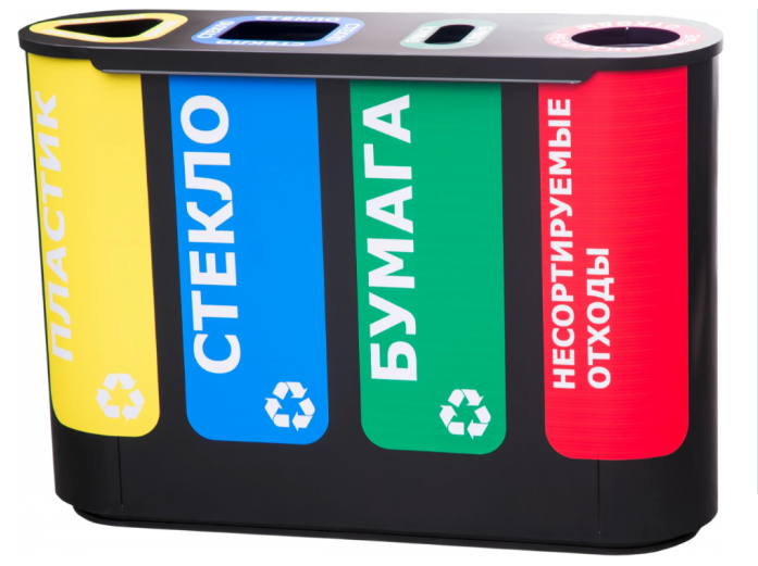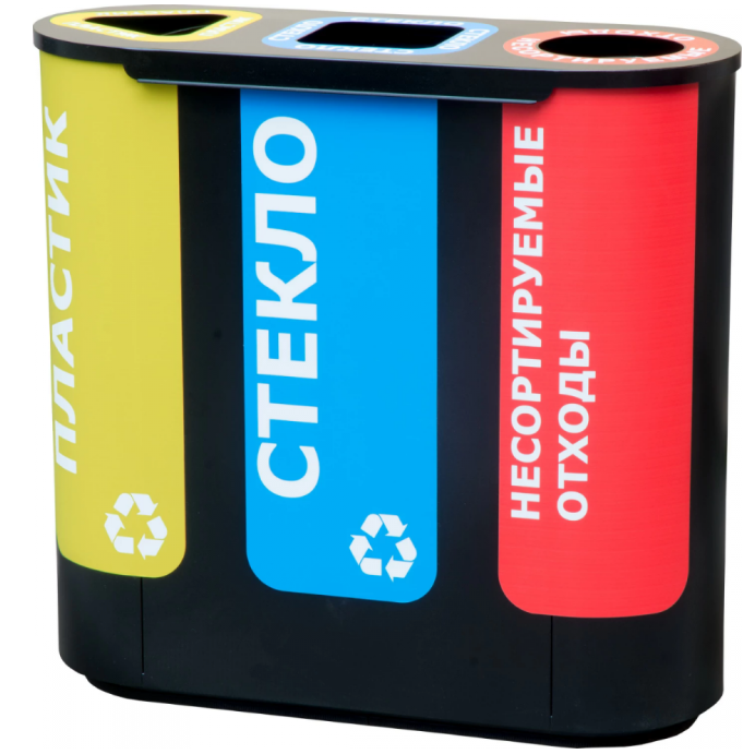 Урна для раздельного сбора мусора с наклейками: пластик / стекло / несортируемые отходы Высота, мм 870 Длина, мм 920 Ширина, мм 380 Объём, литр 180 Штабелируемый Нет Вкладываемый Нет