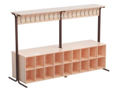 Вешалка напольная (со стеллажом) 36 мест Размер 2336х853х1600 Цвет ЛДСП - Дуб молочный, Ясень Шимо (светлый), Серый, Бук Цвет каркаса - серый или коричневый Изготавливается на металлическом каркасе из трубы...