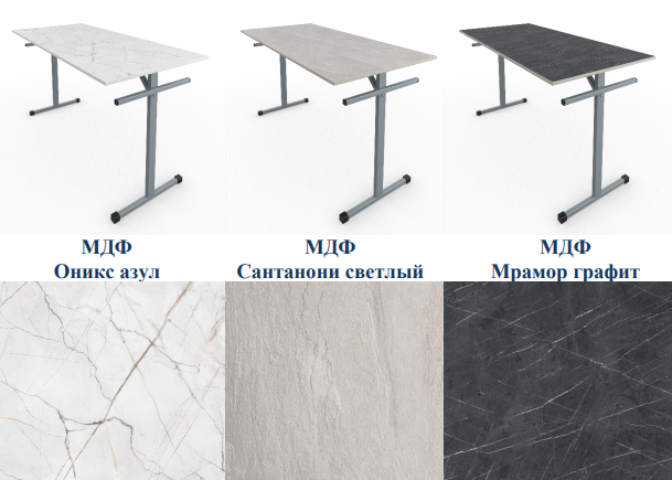 Стол обеденный под табурет шестиместный 1500х600х760мм Цвет столешницы - мрамор графит, сантанони светлый, оникс азул Цвет каркаса - серый Столешница обеденного стола изготавливается из МДФ толщиной 16мм. Торцы у столешницы...