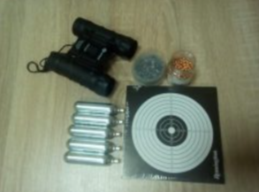 Инвентарь предназначен для пневматической стрельбы. Комплект включает в себя: Шарики BB кал.4,5 мм — 1 уп.; Свинцовые пули, калибра 4,5 мм — 1 уп.; Бинокль — 1 шт. Бинокль используется...