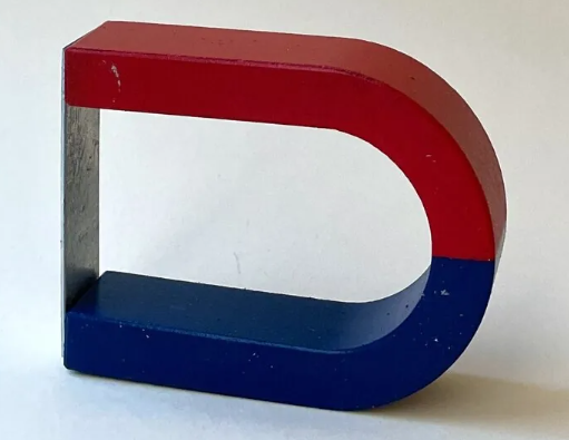Магнит изготовлен из полосовой стали. Каждая половина магнита окрашена в разный цвет.