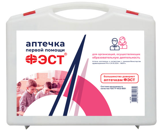 Аптечка изготовлена в соответствии с приказом Министерства здравоохранения Российской Федерации от 24.05.2024 г. №261н Состав футляра полистирол размером 266×220×80 мм : - Маска медицинская нестерильная одноразовая - 2 шт. -...